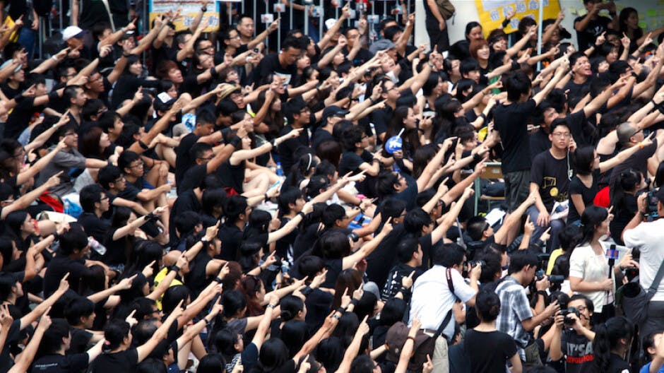 約1時左右,已見在校外百米左右位置聚集了人群,有他校學生、有穿便服的工作人員 (提供橫額、貼紙等工具) ,及擺放好錄影機和相機的記者。當午膳鐘聲響起,高中學生魚貫而出離校午膳,作為校長的我實在憂心,究竟會有多少學生參加?他們會否安全呢?校長們曾建議老師跟在他們附近,以防萬一有意外發生也可保護他們。可是從另一角度看,學生或傳媒會誤解我們的良好意願,認為學校監視學生,及剝奪他們的言論自由,所以校長們決定留守在校,而各位主任亦一改在外用午膳的習慣,與我們共同進退,以防有特別事故發生。