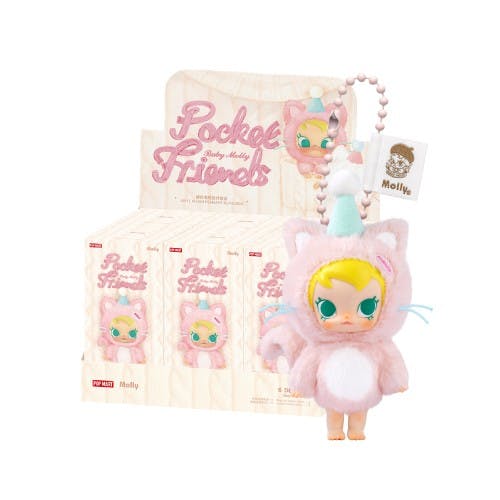 捧紅Labubu的是一家內地玩具製造商,叫Pop Mart(泡泡瑪特),生產大量「盲盒」玩具,老闆王寧是個年輕商人。約2016年,公司赴香港簽約「Molly」的IP,Molly是湖綠色眼睛和金黃色捲髮的小女孩,才華橫溢但是驕傲,嘴巴翹翹,她出自香港設計師Kenny Wong(黃信明)之手。