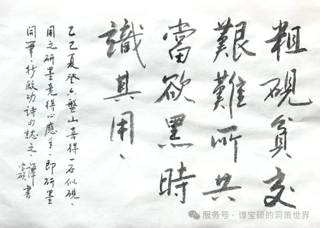 攜石歸家,日復一日,我伏在案前,雕琢研磨。石屑紛紛飄落,硯石的紋理漸漸浮出,恍然間,我也成了山野間鑿石作硯的古人。