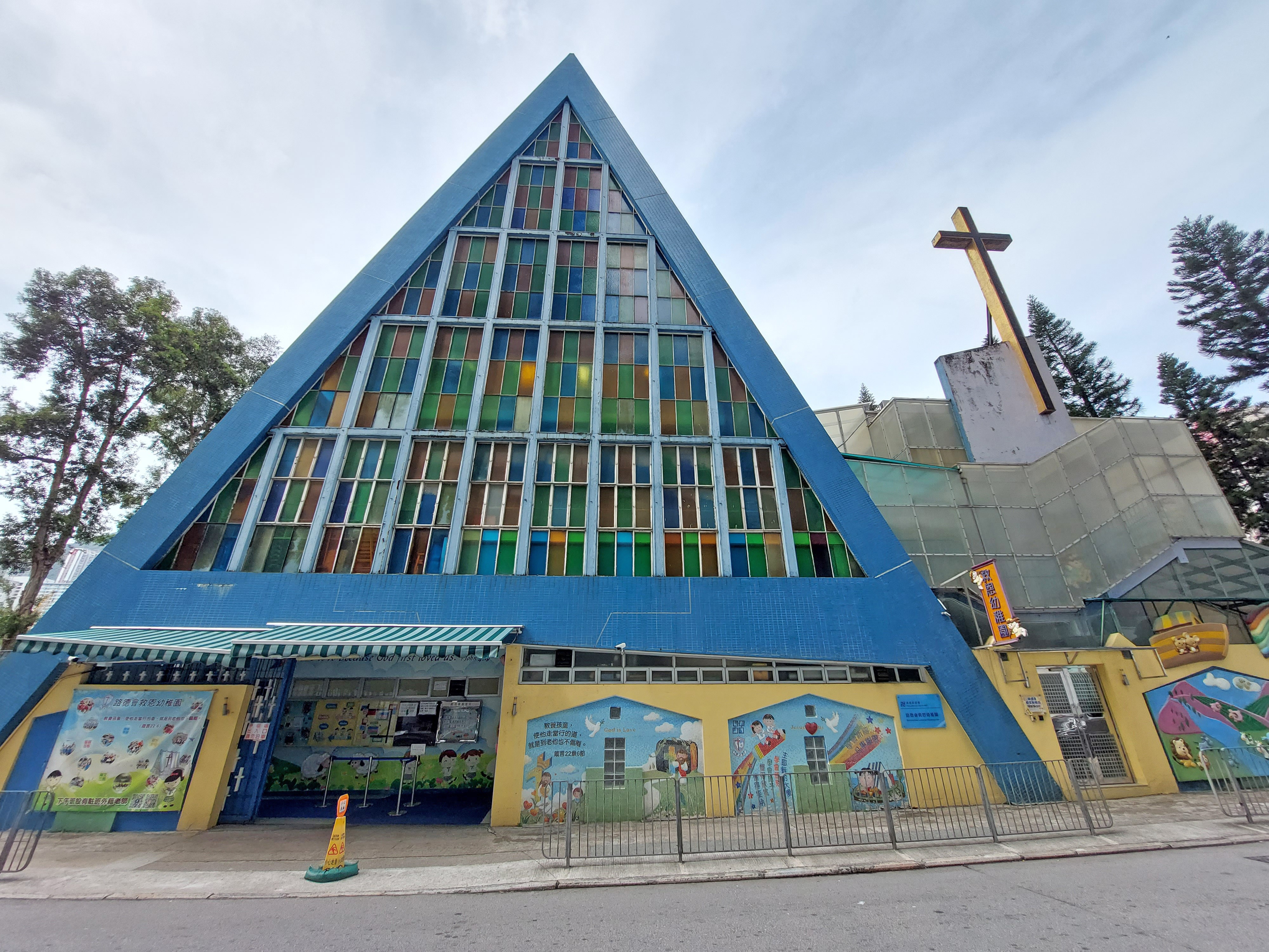 位於長沙灣廣利道的聖公會基愛堂,牆身排了一列窗戶,每個窗之上均有尖角,仿效哥德式特色。聖所上方的屋頂呈尖角半圓形,像一把傘護佑信眾。黃大仙沙田坳道的聖公會聖十架堂採用現代主義風格,一方立面鋪上彩色玻璃幕牆,中間有矚目的十字架,另一方立面的屋頂有座類似鐘樓,頂端豎立三支不同面向的十字架,照耀各方。