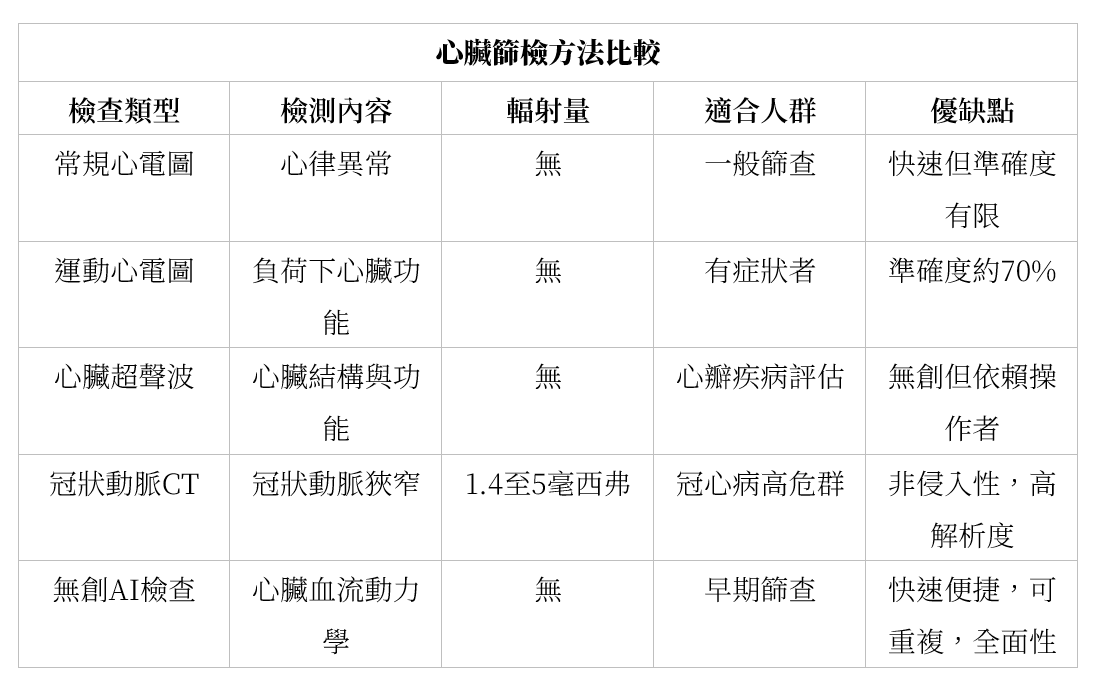關於心臟檢查的輻射風險,公眾常有誤解和擔憂。事實上,不同心臟檢查的輻射劑量差異顯著。傳統心電圖、超聲波和上述無創AI檢查完全不含輻射,是最安全的選擇。而心臟電腦斷層(CT)的輻射劑量取決於設備和技術,最新機型已可將劑量控制在低於香港的年自然背景輻射量。