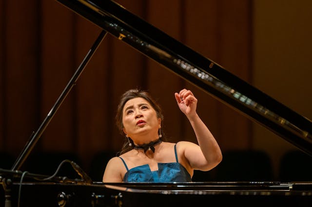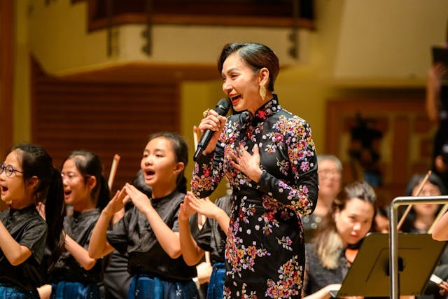適值抗戰勝利80周年,音樂會以《黃河大合唱》之〈保衛黃河〉及〈黃水謠〉作為開場表演,氣勢磅礡,女高音組非常出彩及搶鏡。〈黃水謠〉原本是一首獨唱曲目,現在用合唱形式,更有投入感,感慨今日和平來之不易。