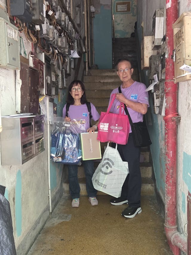 他續指,「以前旺的時候可以開工20多至30天,現在一般來說每個月只有20天開工,昨天我們去探訪一個劏房戶,就因為紅雨無法開工。如果一家五口,他賺2萬元左右其實很濕碎,交6000多元租金,水電要獨立計,很多時候還要靠食物銀行補助,所以他見到我們派麵和罐頭很開心。」