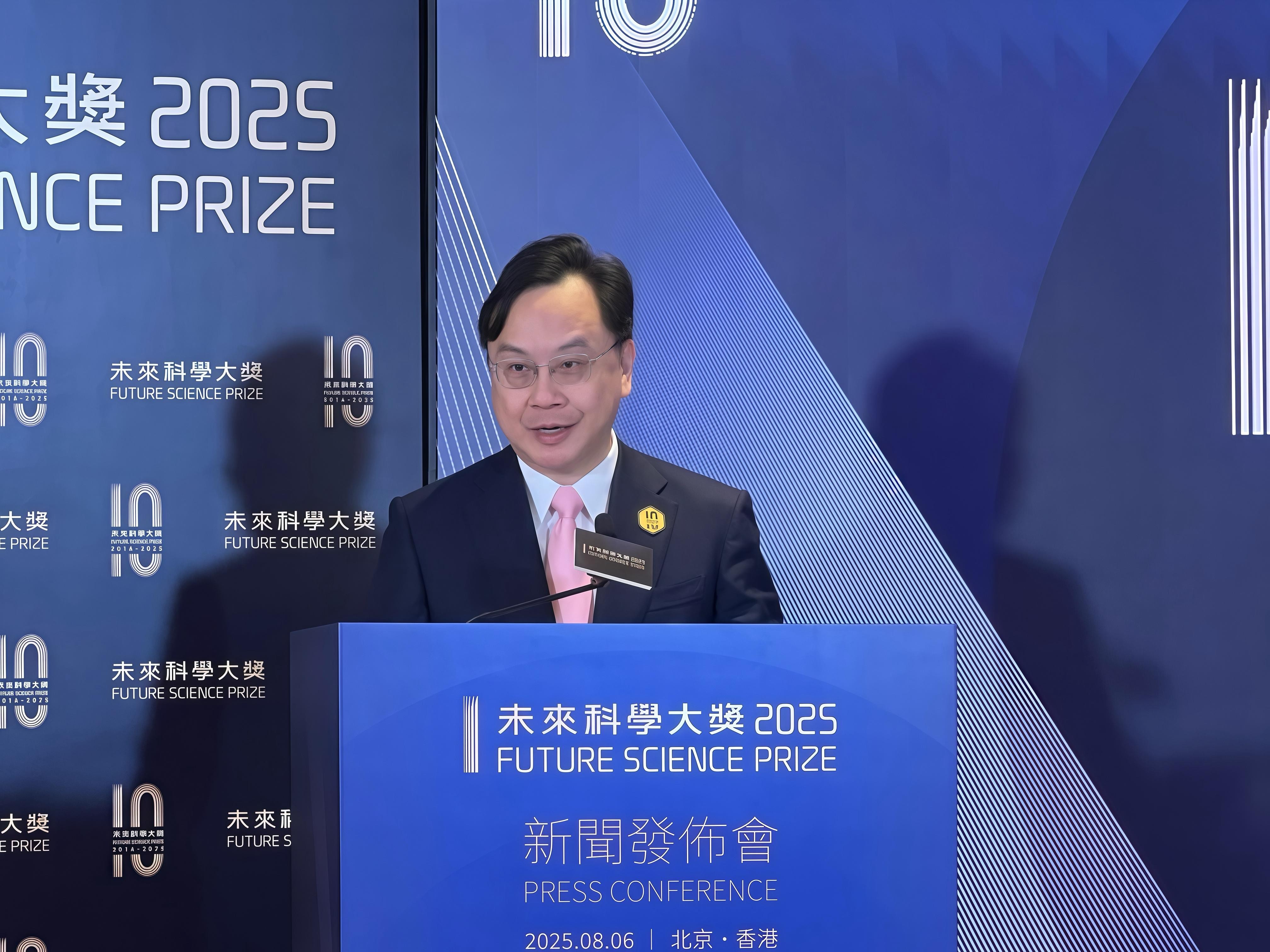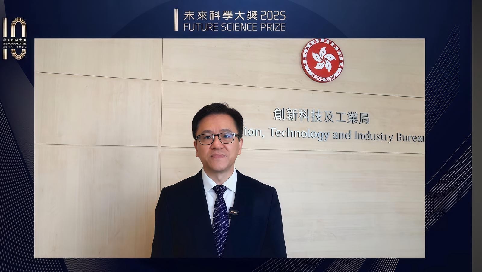 創新科技及工業局局長孫東教授視頻致辭祝賀本屆獲獎科學家,更表示未來科學大獎自2016年成功評選出46位世界級科學家,彰顯專業評審水準與科學價值,獎項已成為中國在國際科學界的重要品牌,對推動中國以至全球科技進步發揮關鍵作用。孫東感謝港科院多年來努力推動香港科研和科普,舉辦逾500場科學活動,成為特區政府的重要夥伴,期望港科院與未來科學大獎繼續合作,更強調香港正朝「創科盛世之都」邁進,期望大眾見證科學的力量,攜手探索未知奧祕。