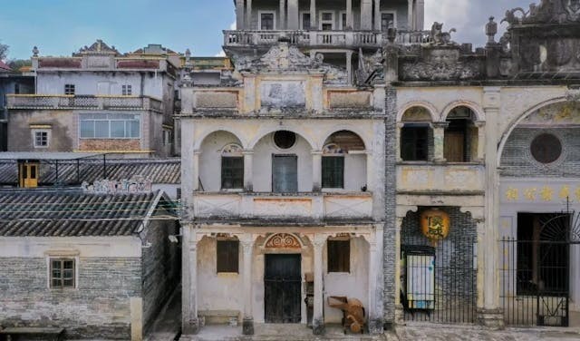 開平是華僑之鄉,碉樓是當地特色,它見證着從戰亂到當下的小康。踏進開平倉東遺產教育基地,眼前是典型的傳統村落布局,村口有大榕樹和池塘,祠堂就在村口。
