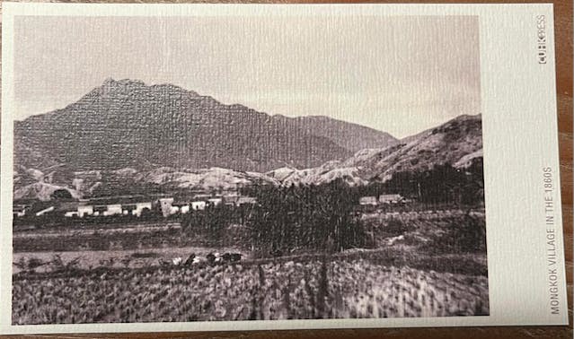 我拿起隨書附送,「1860年獅子山下的旺角(那時叫芒角村)照片」。旺角,那不正正是一百年後,我從新界鄉鎮,每天乘坐火車,到市區念中學必經之地。早上從旺角火車站走下來,經過亞皆老街、走上加多利山旁的學校上課。