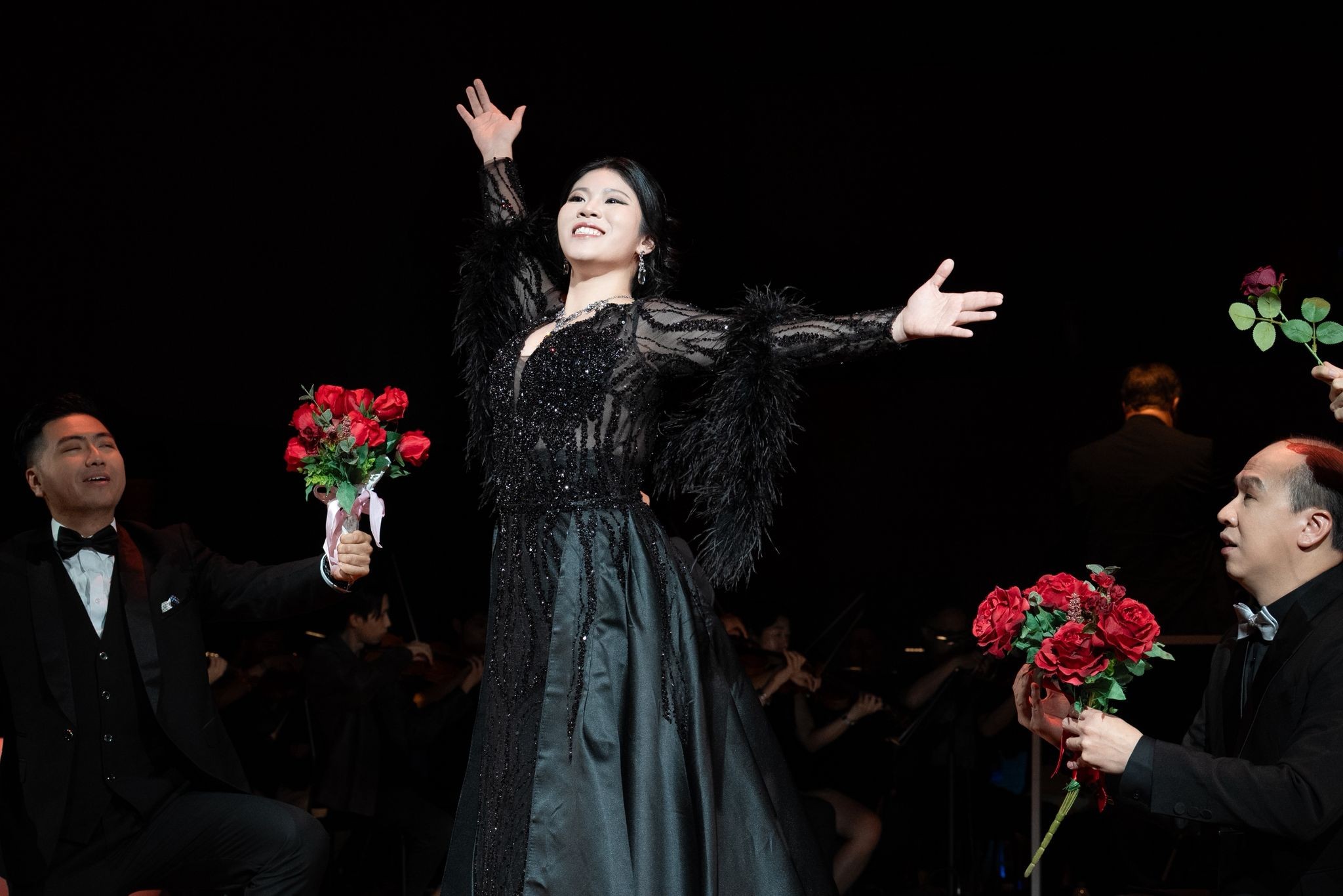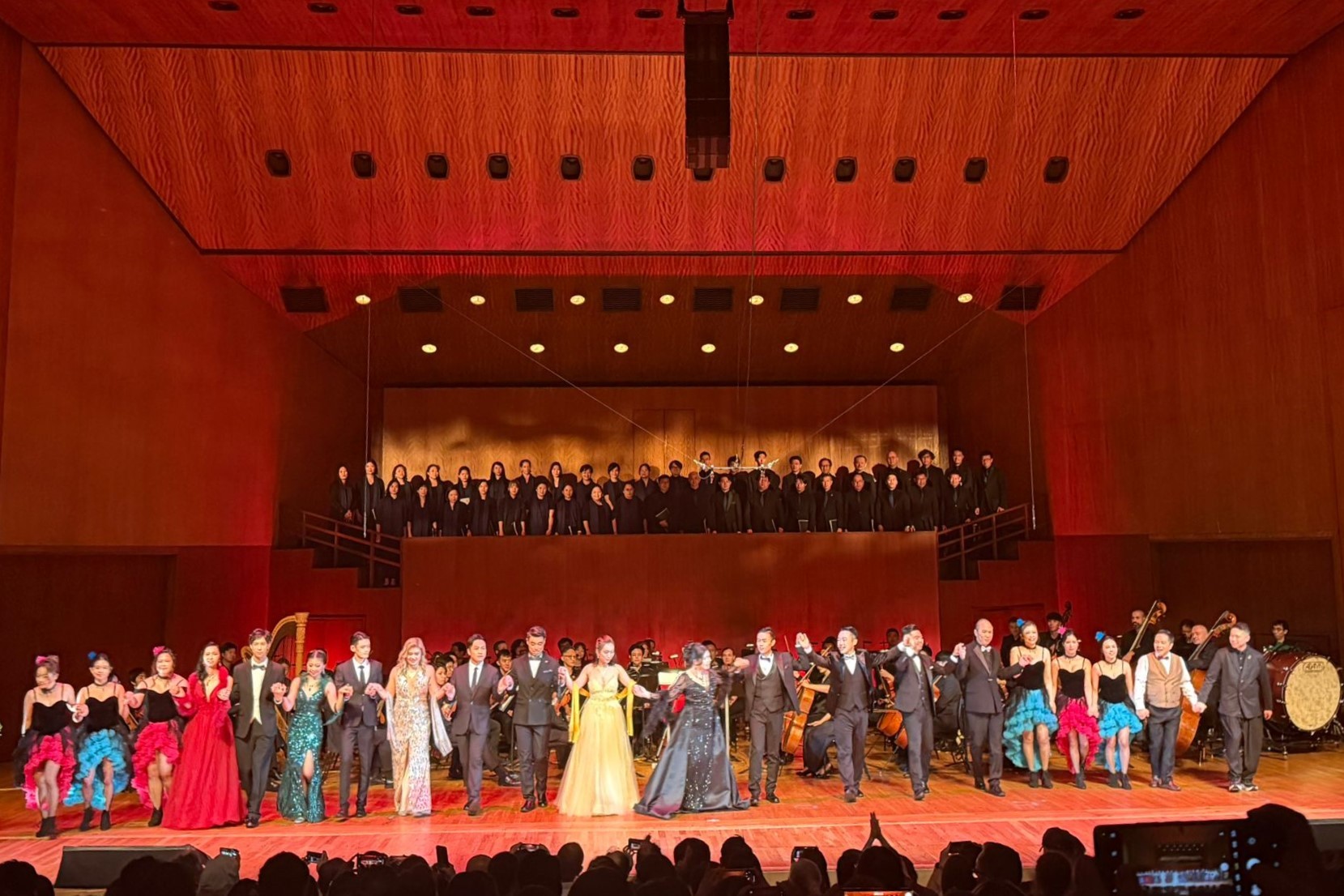 除了獨唱、重唱、合唱,幾位舞蹈女演員也十分出彩,她們分別都是女中音、女高音、鋼琴演奏女生及合唱團成員,謝幕時,觀眾的掌聲也特別熱烈。