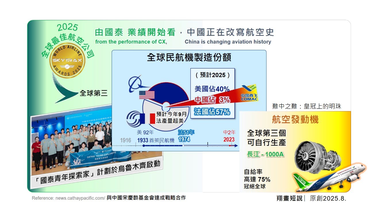 就算空客的發動機也依賴美國,但中國航發集團的「長江-1000A」正在改寫這一格局:這款專為 C919 設計的發動機,推力達13.5噸,油耗比同級競品低12%,氮氧化物排放減少20%,預計2027年批量裝機。關鍵是C919飛機零部件的自給率(自產零件比例)高達75%,超出目前美國、法國的公司。(註8)