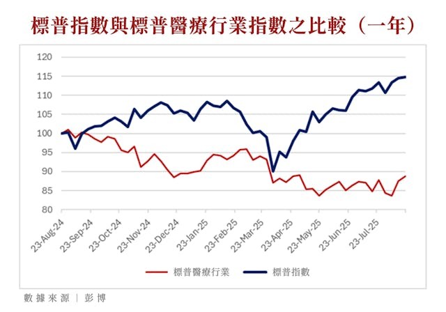 但有趣地從上圖可以看見,近一年,美股市場中的醫療行業板塊出現了明顯跑輸大市的情況。當中到底是行業發展遇上冷鋒,還是只是像「Mag 7」這些科技大企表現實在太好而已呢!
