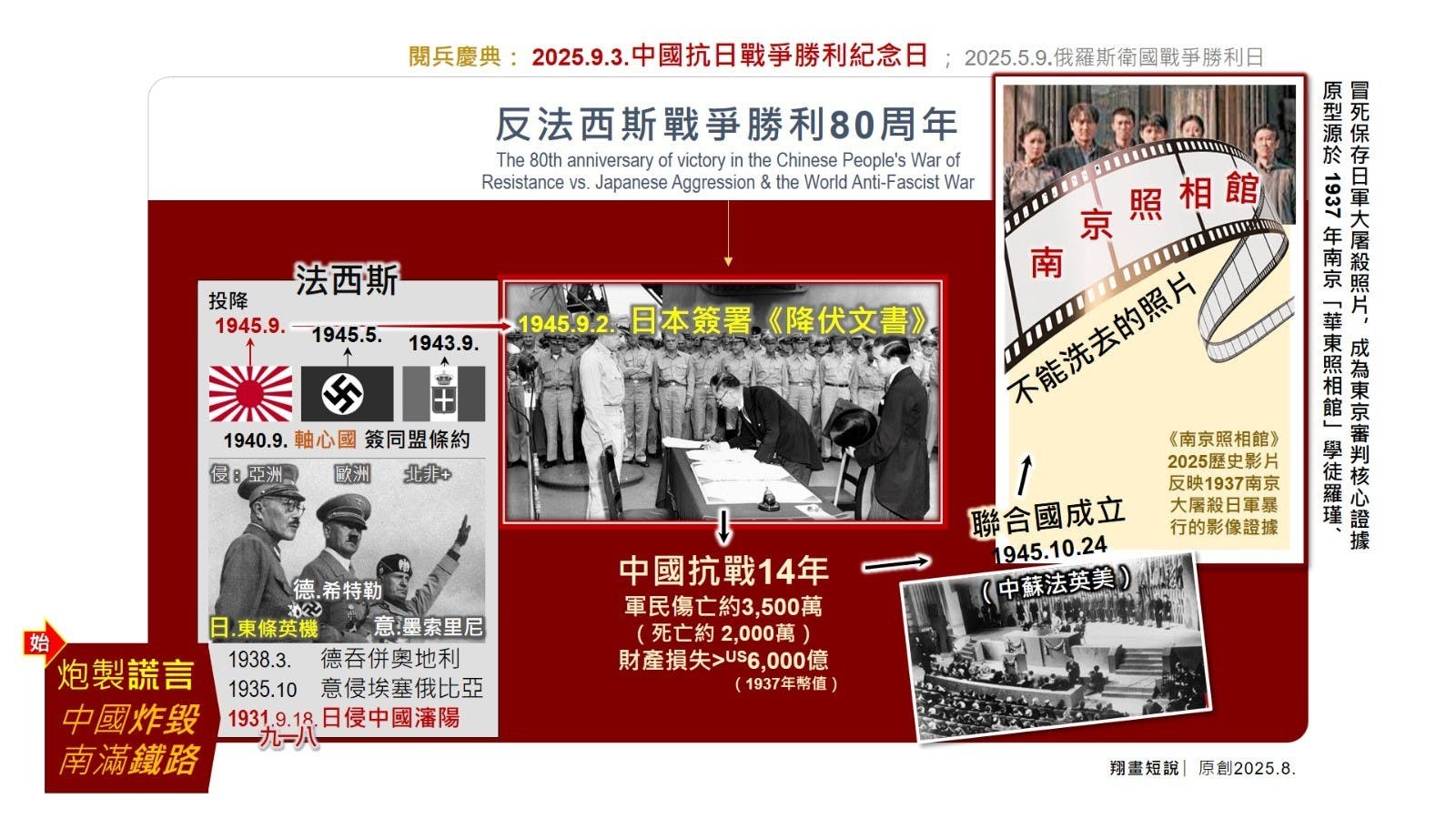 「1931年9月18日夜晚,駐紮在中國東北鐵路沿線的日本關東軍,在瀋陽柳條湖附近炸毀了南滿鐵路的一段,誣稱鐵路被中國破壞。隨後,日本向中國東北軍的駐守地和瀋陽城發起進攻。」資料來源:當代中國 ,〈九一八事變前 日軍國主義擴張長期侵略中國〉,2021年9月18日 (網址:https://www.ourchinastory.com/zh/2467/九一八事變 )