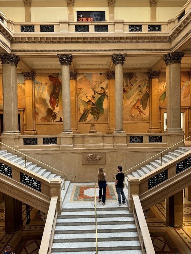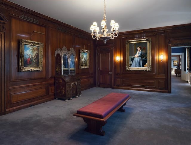 走入這座曾是弗里克私人府邸的博物館,等於走入了那個鍍金年代。翻新之後的博物館主建築依舊是新希臘式風格。內部則無論是餐廳、宴會廳、庭院還是寬闊的大理石樓梯,如歐洲貴族城堡和府邸般極盡洛可可風的裝飾,反映着「新錢」急於想要證明和「老錢」有同樣品味的心態。