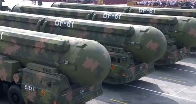 記憶中有大量未見過的新武器,例如洲際彈道導彈東風61及東風5C,都是威力驚人。東風5C已經十分厲害,速度可達音速19倍,又能變軌,並可帶10枚分導式核彈頭,是可覆蓋全球、擋無可擋的導彈。東風61是第一次亮相,能飛1.5萬公里,比東風5C還要犀利。這些及其他各型號的飛彈、五代戰機、無人機、潛艇等無不使人畏懼,綜合起來,只有一個效果,便是震懾!