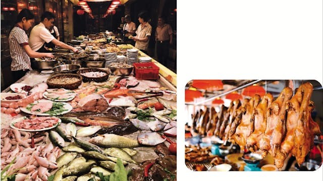 右圖:滷水鵝檔。左圖:打冷枱。(作者圖片)