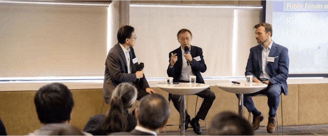 研討會後,香港科技大學再於8月8日在科大商學院中環中心舉辦了一場公眾論壇,邀請極端降雨研討會幾位專家以及本地的持份者小組討論,筆者主持了科學小組的討論(圖十三)。