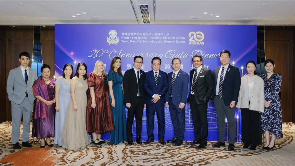 香港浸會大學附屬學校王錦輝中小學於9月13日晚上舉行20周年校慶晚宴,政商界、立法會議員、學界及家長、學生等近500名嘉賓雲集一堂,共賀學校的卓越成就。主禮嘉賓政務司司長陳國基、浸大校董會暨諮議會主席黃英豪博士回顧創校歷程,讚揚學校推行全人教育成果,並寄語師生繼往開來,為國家及香港培育更多棟樑之才。