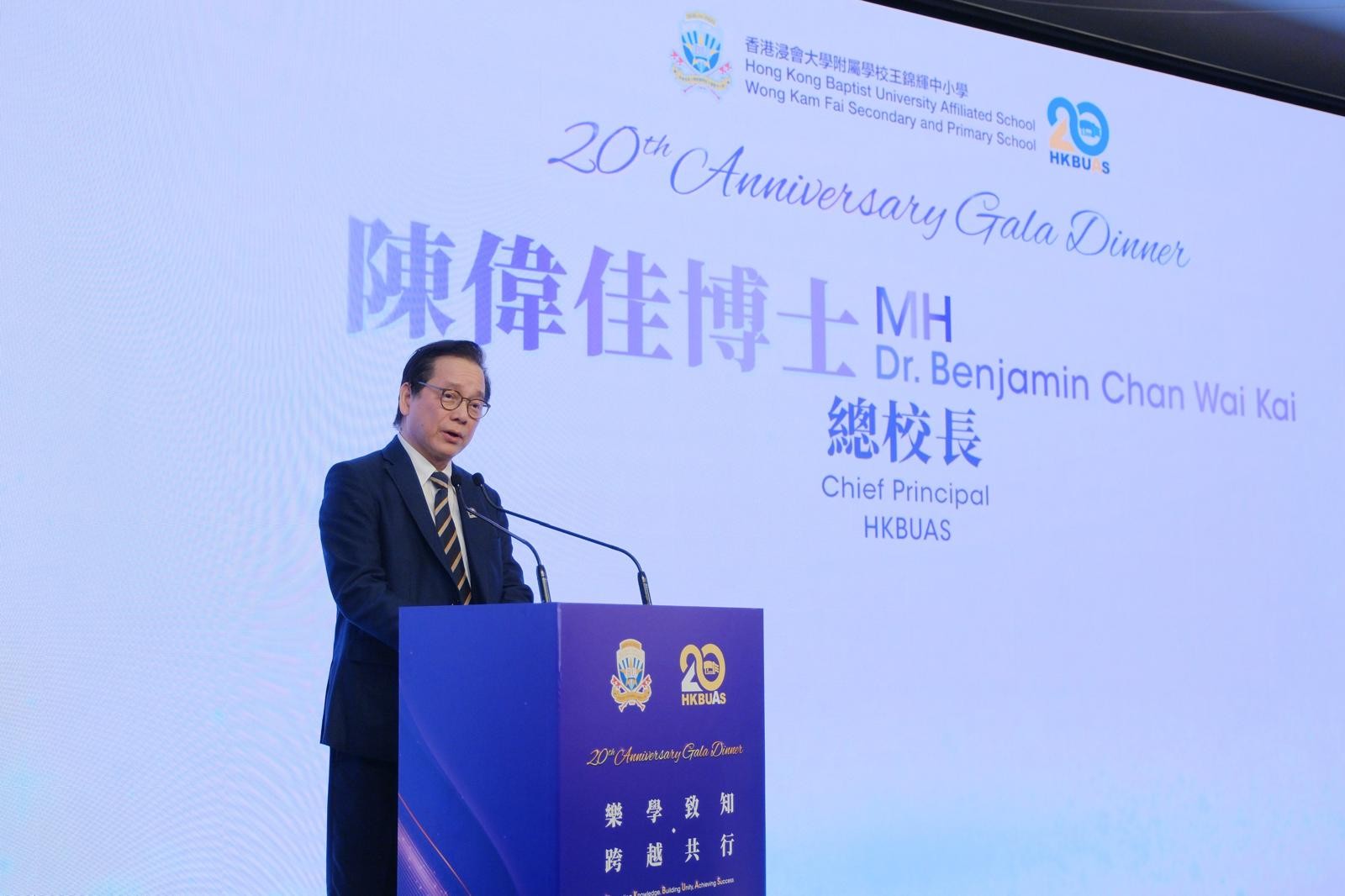 總校長陳偉佳博士強調學校將不忘教育初心,堅守全人教育理念,不僅重視學術成就,更致力於學生在藝術、體育等領域的全面發展,致力培養學術與品德兼優的未來領袖。「我們不僅追求學術卓越,更重視學生品格的培養與國際視野的拓展,持續融合中西文化,陶冶學生情操,實踐『學子為先』的教育理念。」他寄語師生與家長攜手同行:「20周年是重要里程碑,更是嶄新起點。我們必將保持活力,實現20年前託付的願景與使命。」