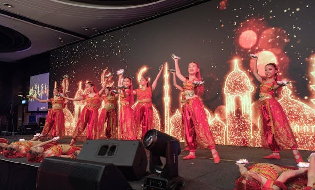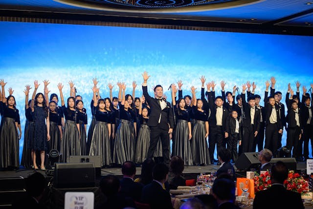 20周年校慶晚宴表演環節精彩紛呈,充分展現學生的多元才華。學生合唱團獻唱獲獎作品《如畫般的天際》,歌聲中唱出「香港是我們美麗的家」,感動全場。該作品曾於國際音樂比賽中榮獲多項金獎,彰顯學校在藝術教育方面的成就。