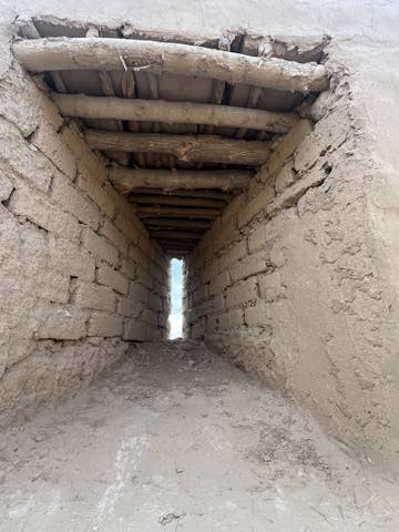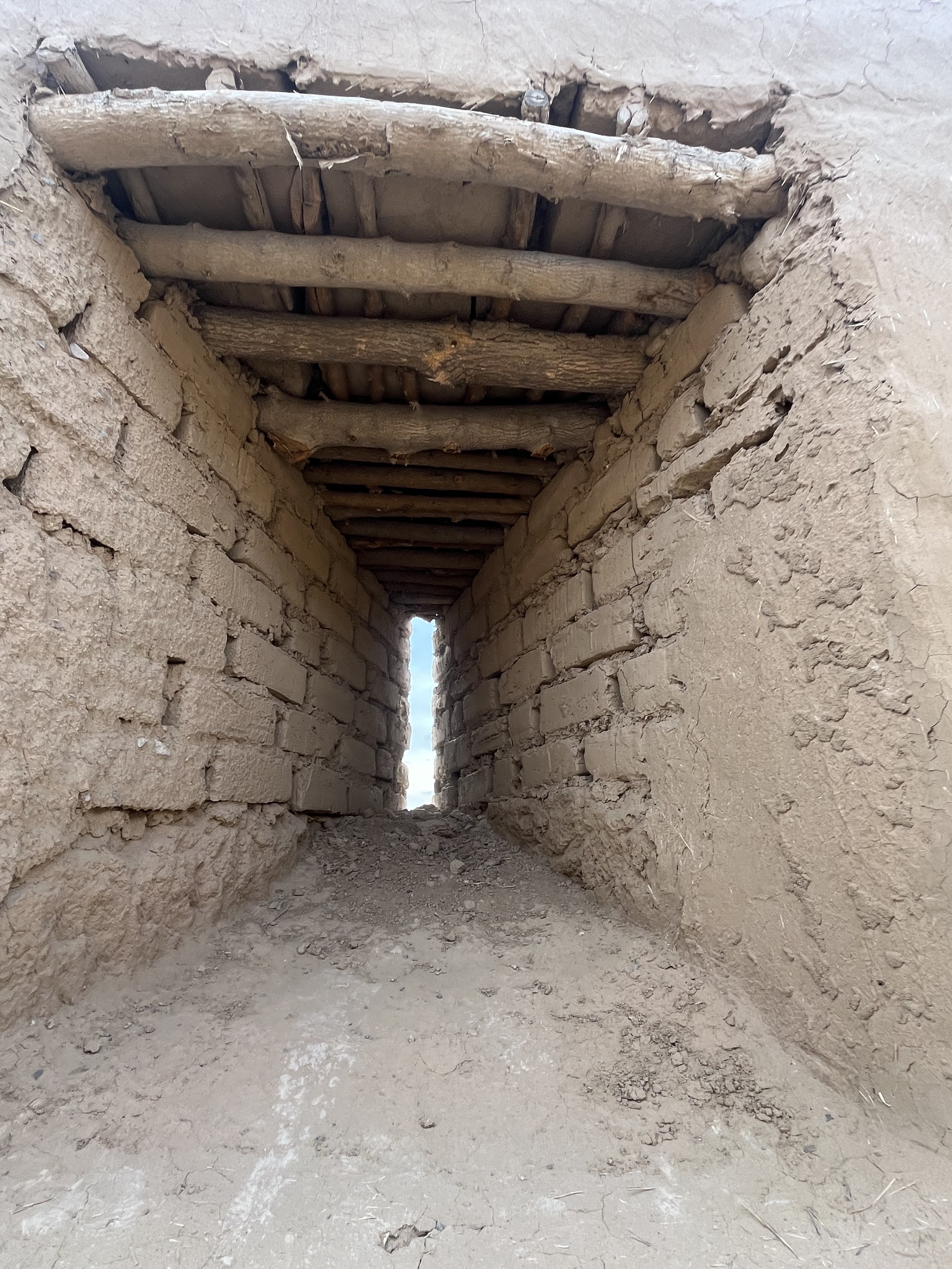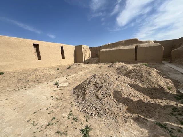 走在迷宮般的遺址上,地勢高低起伏,有如小山丘般,觸目是殘垣斷壁,到處是坑坑洞洞,在隨團考古學家的講解下,還依稀分辨得出城牆、通道、宮殿、房舍……厚實的城牆上,經常出現一條不成比例的細窄窗口,據說這樣的設計,不但可以防禦兼採光,也可抵擋冬季沙漠的狂風與寒冷。一座城池,雜草叢生,多少往事,都化作沉默的土牆。