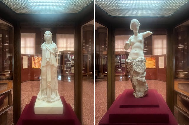 眾多珍貴的展品中,年代最早的是一尊大理石像,喚作《尼薩女神》,約為公元前3至2世紀的作品,石像是位身披希臘式衣衫的少女,面帶微笑,神情端莊優雅。