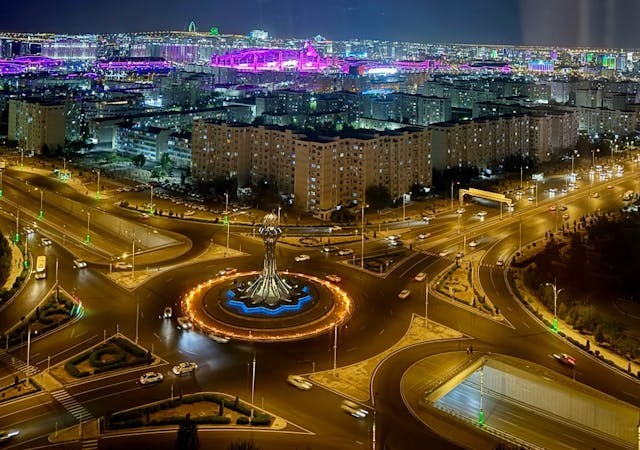 阿什哈巴特,意為「愛之城」,位於土庫曼中南部、卡拉庫姆大沙漠南部邊緣,緊鄰科佩特山,距伊朗邊境只有30餘公里,是此國的政治、經濟、文化和科研中心。