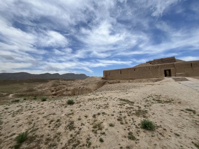 漫步尼薩古城,在荒漠中登上斑駁的土坡,游目四顧,不禁浮想聯翩,歷史上,這座古絲路上的城堡,位於中亞重要的商業與戰略交叉路口上。考古學家從這裏挖掘出來神殿、陵墓、宮殿等建築遺跡,以及大量的文物,如角杯、大理石雕像、銀製品和石製品等,其自身傳統文化與希臘羅馬文化交融互滲的痕跡,明顯地呈現出來。