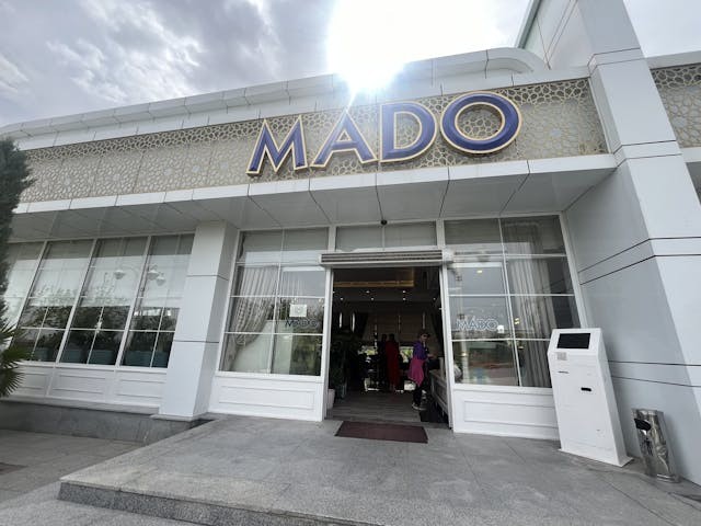 在土庫曼吃的第一頓午餐,就在一間雅致的花園餐廳MADO,園中長着許多樹,高高低低的,其中以蓊蓊鬱鬱的柏樹最多。近入口處,燦爛的紫藤花在搖曳。出乎意料之外,午餐異常豐富,而且好吃,不同款式的沙律,香濃的豆蓉湯,主菜有餡餅、烤雞,還有水果、甜品、熱茶⋯⋯食材新鮮,素質亦佳,大家都吃得津津有味,為此行譜上愉悅輕快的序曲。