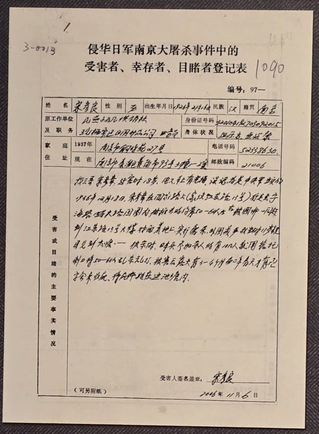 走進史料陳列室,在幽暗的燈光中是一列列的遇難同胞的名字和相片,另一面牆上是50名仍在世的倖存者,很多史料都是從他們的口中傳出來。還有大量的抗戰資料,由九一八事變、七七事變、八一三事變到日軍向南京進犯、南京淪陷到日軍的徹底消滅俘虜,圖片加上倖存者口述的紀錄,都在訴說著日軍的殘酷。
