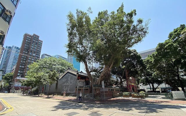 那是我們童年嬉戲長大的地方。我們就在附近出生,在其隔壁的小學讀書。小小的泥巴地廣場中繁衍生長着十多棵古老大榕樹,蒼勁茂密,蓬勃葱蘢,濃蔭蔽日,是香港男女老少時常光顧的「聖地」。大家平素從古榕樹旁經過,總會情不自禁看上兩眼。