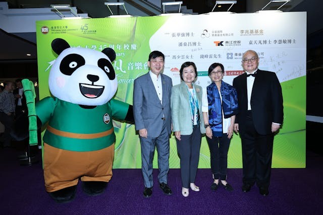 校董會主席施穎茵感謝各位參與音樂會的友好,一同見證恒生大學45 周年校慶的重要時刻,大學有今日的成績有賴各界人士的熱心支持及慷慨捐助。
