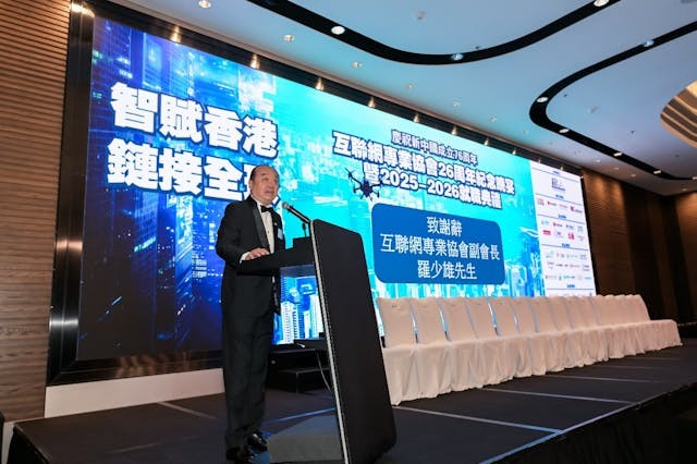 互聯網專業協會(協會)於9月22日舉行「慶祝新中國成立76周年、互聯網專業協會26周年紀念晚宴暨2025至2026就職典禮」。創新科技及工業局局長孫東擔任主禮嘉賓,與各位嘉賓、互聯網專業協會榮譽會長、常務理事會成員及會員、同業超過500人,一同慶祝國慶76周年及協會成立26周年,祝賀國家繁榮昌盛,協會邁向新的高度。