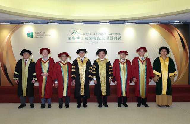 教大校長李子建教授指榮譽博士及榮譽院士展現了無私奉獻、堅毅精神與深厚學養的特質,正是教大所秉持的育才目標、推動社會進步的典範:「James Gross 教授創新的『過程模型』為情感科學奠定了基礎框架,啟發眾多跨領域的研究;劉遵義教授在高等教育領域擔任重要的智囊角色,對經濟學及政策發展有着顯著且深遠的影響;林毅夫教授是中國經濟發展及新興經濟轉型的權威,引領推動中國經濟蓬勃發展;Kishore Mahbubani(馬凱碩)教授曾任新加坡駐聯合國代表,並兩度出任安理會主席,在國際外交與學術界都成就斐然;Michael E. Mann 教授則是氣候科學領域的權威,他的研究對全球應對氣候變化的議題產生了深遠的影響;寬運法師長年投身於教育及社會福利工作,以弘揚佛陀慈悲濟世的精神為己任,為香港市民帶來眾多福祉。」