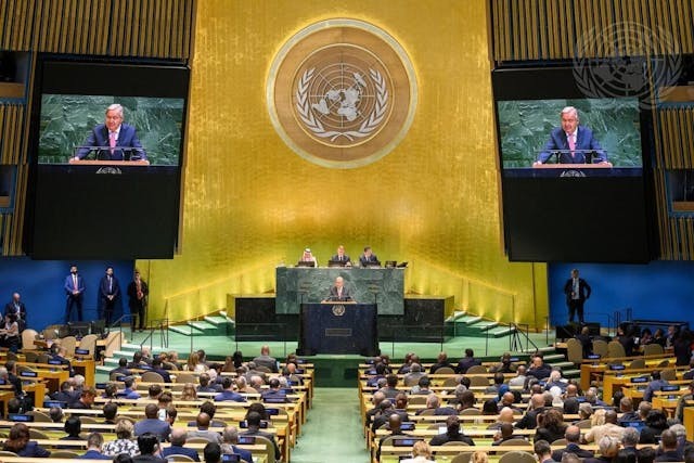 與此同時,推動巴勒斯坦建國的呼聲,最近幾個月也在高漲。2025年7月28至30日,法國和沙特在聯合國共同舉辦了和平解決巴勒斯坦問題和落實兩國方案高級別國際會議,通過了《紐約宣言》,支持巴勒斯坦建國。9月12日,第80屆聯合國大會以142票贊成,10票反對,12票棄權壓倒性通過決議支持《紐約宣言》。