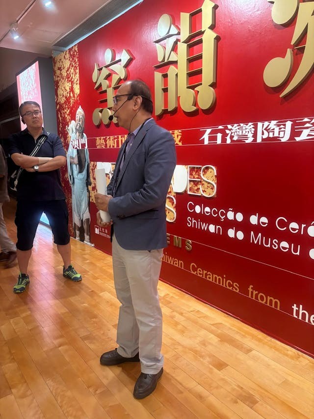 9月28日,筆者聯同13位對嶺南文化有興趣的朋友,一起前往澳門藝術博物館觀賞一個大型石灣陶藝展覽「窯韻凝珍」。這個不可多得的展覽展出123件珍品,於10月7日完結,因此我們把握最後機會前往澳門一趟。朋友中有一位是陶瓷收藏家陳廣生先生,他是這個展覽的策展人盧大成先生的要好朋友,便邀請盧先生親臨會場為我們作深度導賞,讓大家品嚐嶺南的藝術盛宴。