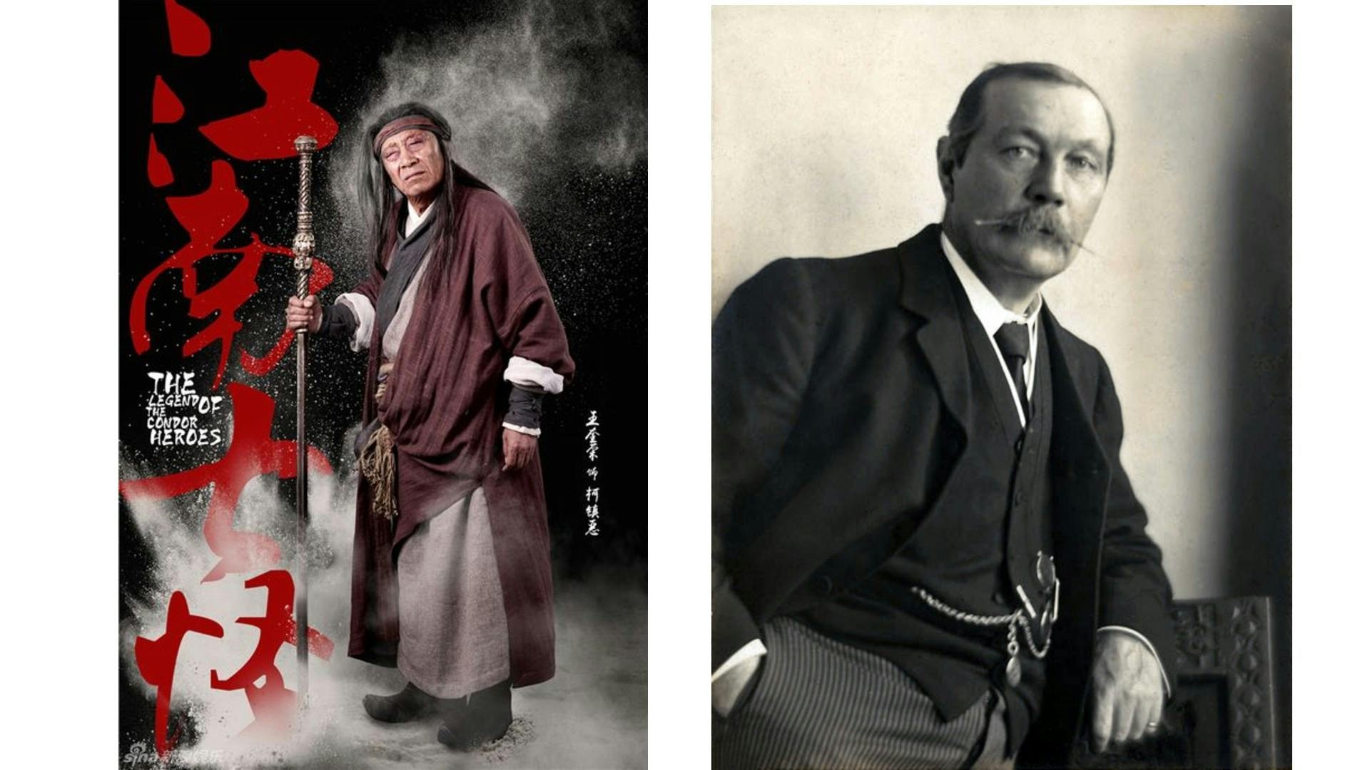 總⽽⾔之,三個陪伴郭靖成⻑的⾓⾊李萍、柯鎮惡和華箏,曲三酒館密室裏的骸⾻,以及「桃花島⾎案」等橋段皆取材⾃偵探⼩說,也必然是經過精⼼部署,絕⾮作者在賣⽂為活⽽邊想邊寫。⽽我們亦從中感悟到⾦庸少年時已飽覽各類偵探和公案⼩說,並⾃許以柯南道爾為師。他無視界限,透過在武俠中混合偵探推理,引導讀者⽤偵探⼿段去找出隱藏在書中的重要訊息。