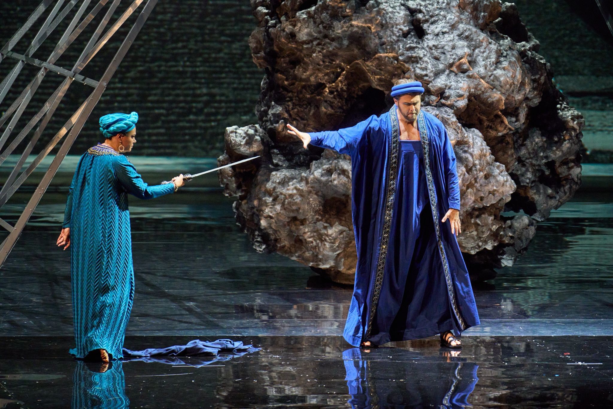 下半場,女主角唱「我親愛的祖國」聲淚俱下,極為撼動人心。為愛情、為祖國,你會選哪一樣?阿伊達和愛人最後選擇死來成全解脫自己,這有些像羅密歐與茱麗葉、或梁山伯與祝英台。不同的是,這歌劇更描繪了他們死在封死的墓室裏,男女二重唱「永別了,人世」,歌詞:再見吧大地!再會吧淚之谷!他們的服裝是深藍與淺藍的搭配,倍感憂傷及淒美,來自俄羅斯的男主角Ivan Gyngazov演唱充滿張力,在氣息的運用上令人驚喜萬分,突顯了他成熟的表演技能。