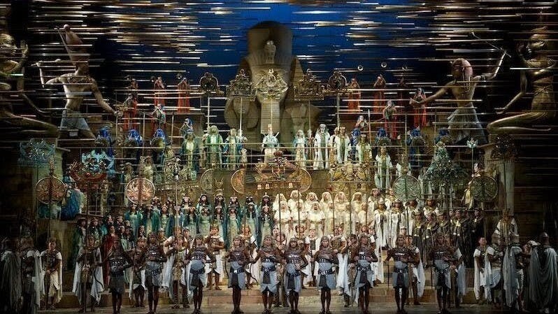 《阿伊達》是意大利作曲家威爾第經典歌劇,講述了古埃及將軍拉達梅斯與埃塞俄比亞公主阿伊達之間的愛情悲劇。已經成為奴隸的阿伊達既希望愛人拉達梅斯能凱旋歸來,同時又希望自己的祖國埃塞俄比亞能勝利,情感衝突下,詠嘆調「願你勝利歸來」的旋律悲壯又無奈,充滿對命運的慨嘆。