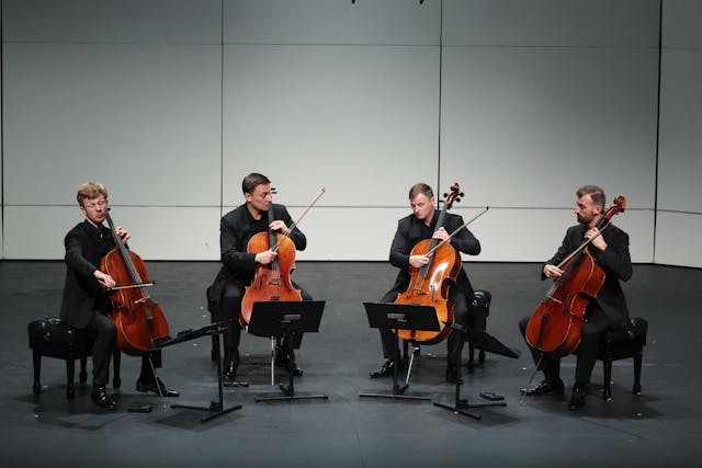 接着波蘭大提琴四重奏選奏本國作曲家的五首作品,包括Kazimierz Wikomirski的《狂想曲》,以及三首改編自蕭邦的鋼琴曲,包括第四前奏曲和降D大調圓舞曲。該四重奏2011年成立,各人輪流主奏、和奏,渾然成為一體。大提琴低沉的音色,表達悲慟情緒尤其奏效,四把合奏用在蕭邦葬禮的E小調前奏曲效果彰顯。