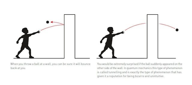 在量子力學的微觀世界中,像電子等微觀粒子有時會直接穿過其微觀世界中的等效屏障,出現在另一側,這種量子力學現象稱為穿隧效應,通常只能在微觀世界中觀察到。一旦涉及大量粒子,量子力學效應就會變得微不足道,如一個球雖然是由大量粒子組成,當我們把它往牆壁扔,它會反彈,不會出現穿隧效應。而獲獎者的實驗表明,量子力學這種特性可以在宏觀尺度上具體化。