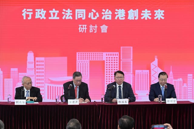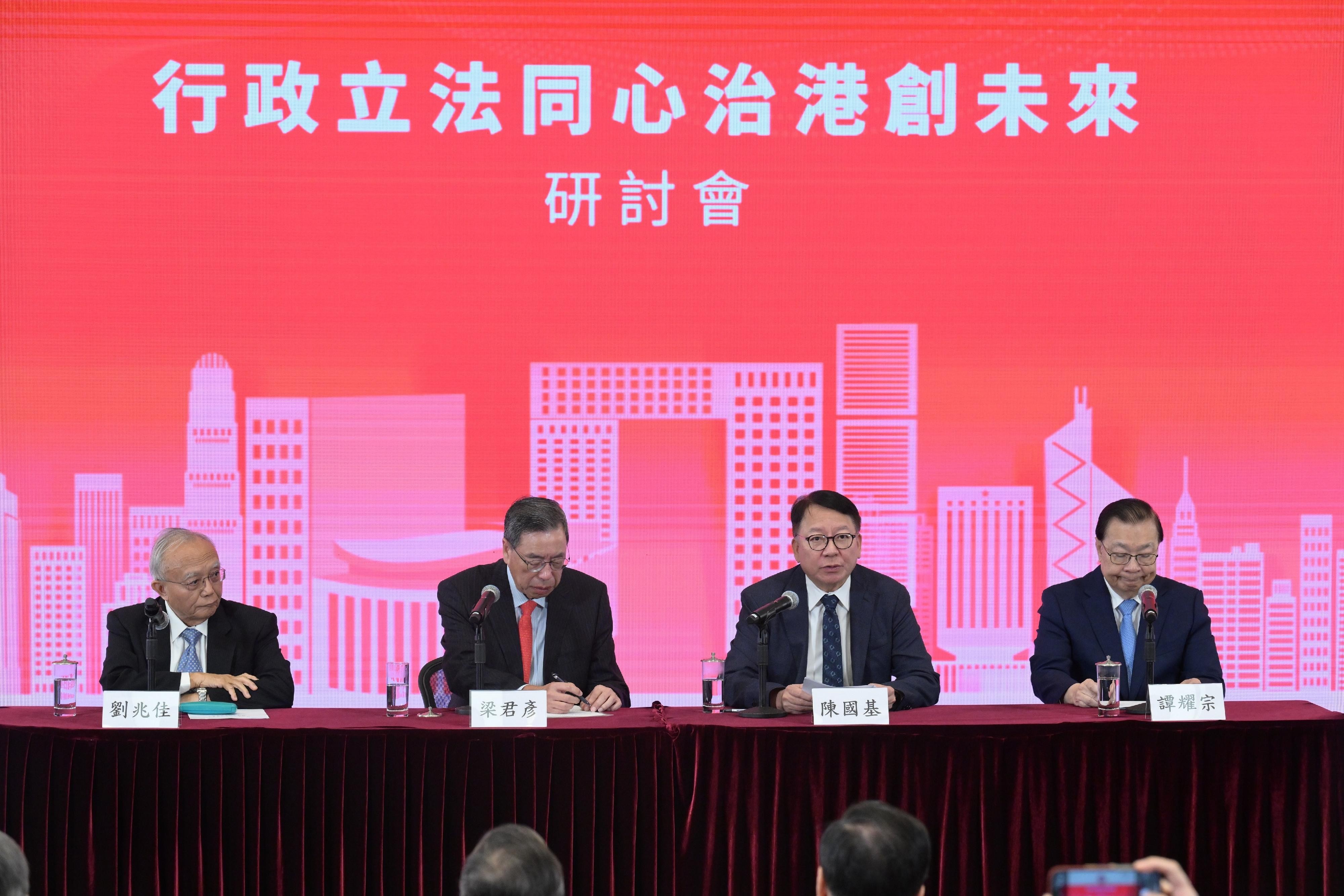 棄選的新聞傳得沸沸揚揚,令多位立法會議員被傳媒反覆追問,只能回應「不多講」、「不要阻住我開會」,甚至「淚灑立法會」之際,港府突然在周四(16日)舉行「行政立法同心治港創未來」研討會;目標是「為加深社會大眾對行政立法機關相互促進,對一國兩制行穩致遠以至特區良政善治重要性的認識」,「邀請愛國愛港團體、社會各界代表,以及專家學者共同交流真知灼見,凝聚共識」。