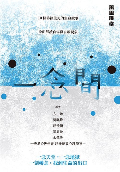 數據反映在平凡喧鬧的市面,不少人心中正經歷風雨,波濤洶湧而無人在意,直到他們別無選擇而被迫離開這個世界,周遭的大家怎樣可以力挽狂瀾?五位輔導心理學家方婷、黃麒錄、郭倩衡、黃家盈、余鎮洋今年推出新書《一念間》,揭示了近年來高自殺率背後的心理和精神困擾,同時探索那個能將人從絕望邊緣拉回的「關鍵一念」。