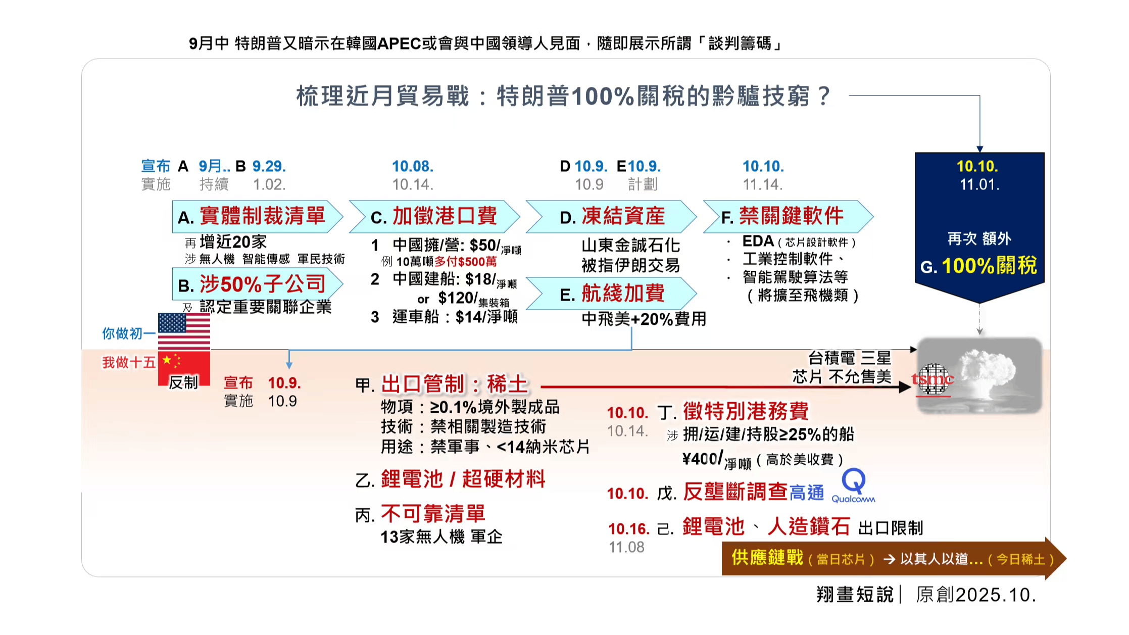 從9月下旬至10月中旬,美國從科技、航運、能源三大領域陸續推出針對性措施,試圖透過多點施壓迫使中國讓步:
