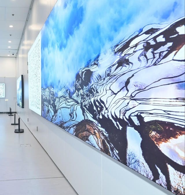 書法攝影展即日至11月3日在香港中央圖書館開展,運用光影技術透視書法線條,讓觀眾能清晰感知莫言書法的墨色層次與流動質感。