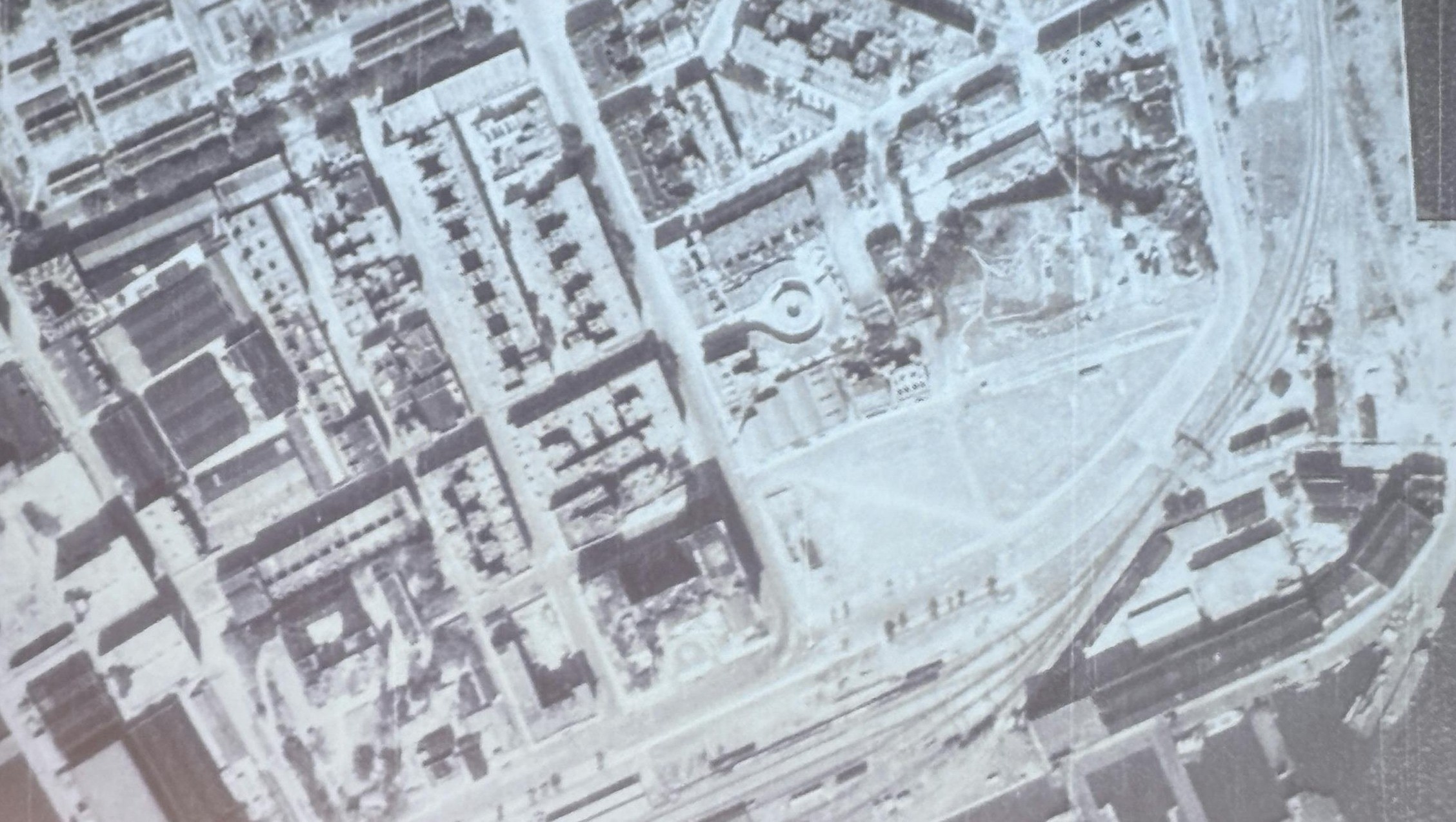 從口述歷史中,也可以得知居民當年如何和日軍當局周旋,戰後香港政府怎樣處理賠償等。他補充道:「當時日軍先是興建了一條水泥跑道,發覺不敷應用,才選擇擴建,拆了啟德濱這個中產地段。」他也細心點出,下圖右下角(河道處)甚至可以看到龍津石橋和九龍城寨。