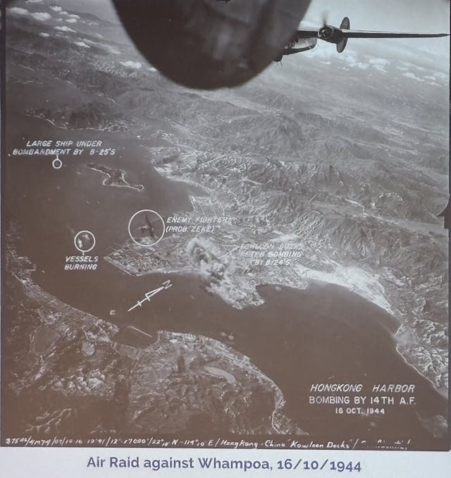 期間香港不斷受到盟軍的空襲。他續指,當時飛機無法長時間航行,所以盟軍透過連接印度東北部和中國西南地區的「駝峰航線」運送軍機,再從中國前往香港等地攻擊日據要點。「每一個掉在香港的炸彈,包括9月19日在濱海街找到的戰時炸彈,都要經過這條路。」
