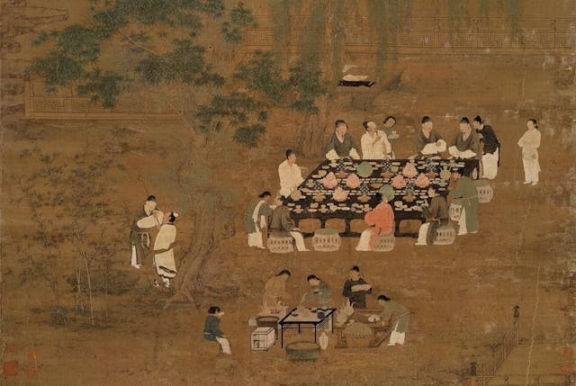 古時中國人基本上每天只吃兩餐,到了宋朝,開放夜禁,百姓日常飲食由兩餐改為三餐,兩餐之間吃一次點心,逐漸成為百姓的生活習慣,繁華的夜生活從此開始,這是中華飲食的一個里程碑。在宋代名畫《清明上河圖》中可見市井飲食之精彩,蘇東坡的確趕上了宋代的飲食好時光,只可惜他仕途不順,到處流轉,錦衣美食輪不到他,而簡單民間美食就成了他生命中的一大享受和慰藉。