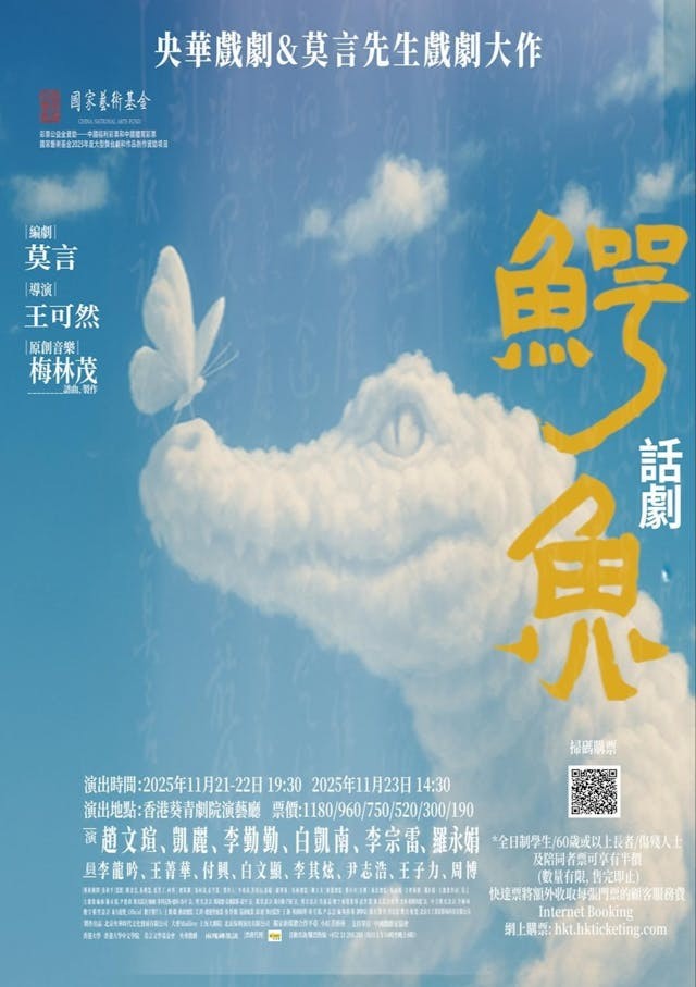 莫言首部話劇力作《鱷魚》在榮膺第18屆中國文華獎表演獎後,將於2025年11月21日至23日首度登陸香港舞台。《鱷魚》不僅延續了莫言的文學精髓,更以魔幻現實主義手法,解構欲望與人性的光輝。該劇以「欲望、道德與救贖」為主題,以「鱷魚」為隱喻,剖析權力與欲望的膨脹過程,劇情圍繞貪官單無憚的墮落軌跡展開,借荒誕情節影射現實社會中的道德困境。