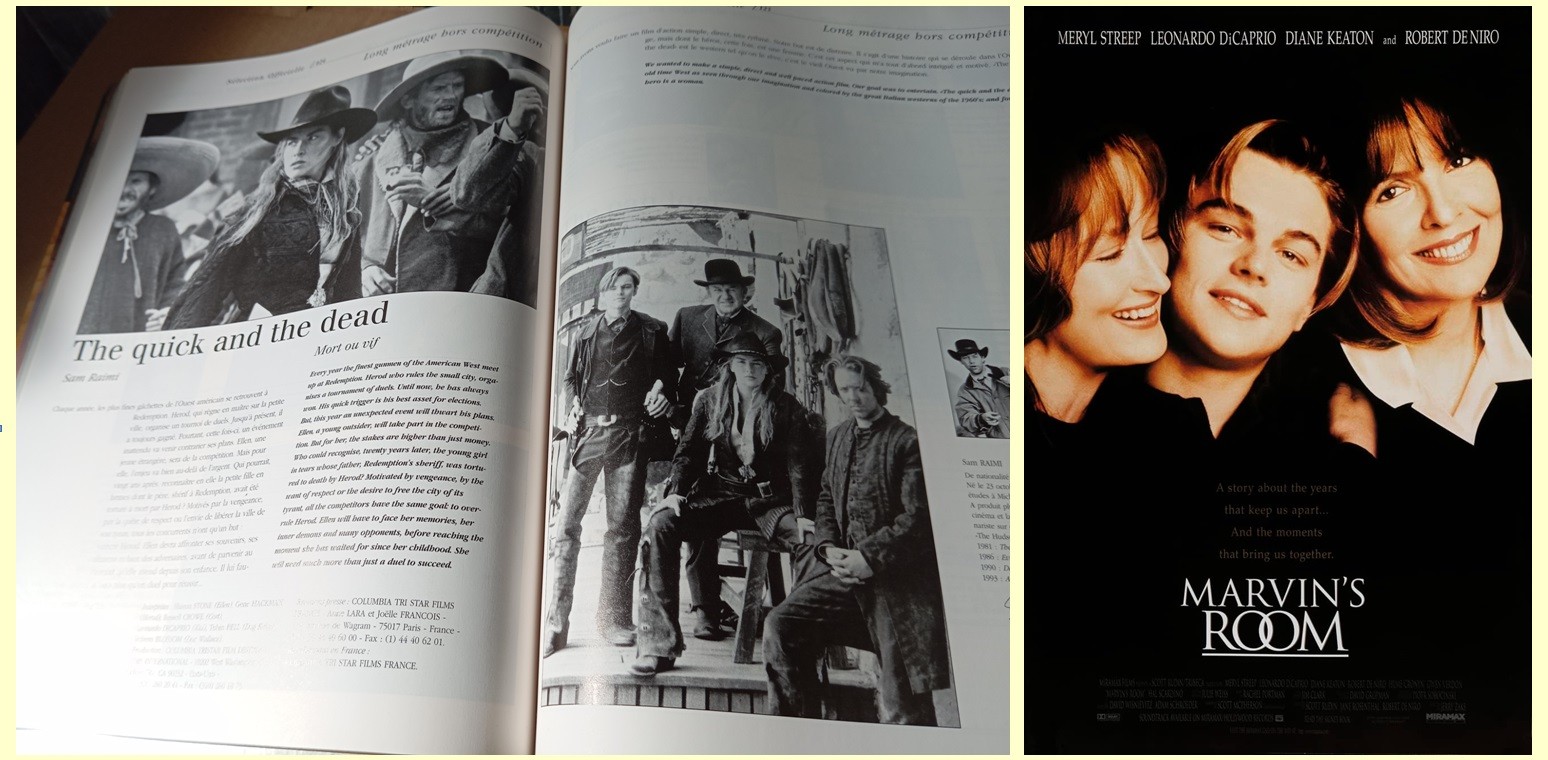 1995年歐遊,刻意跑到康城影展看風景,苦無資格進場,猶幸部分參展片幾近同步在巴黎開畫,得以先睹,包括Sam Raimi的《鳳舞狂沙》(The Quick and the Dead, 1995)。不一樣的西部片,聚焦小鎮內你死我亡的槍戰決鬥淘汰賽,每回只有一個結局──「快槍手生,手慢者亡」。狄卡比奧是參加者之一,以"Kid"之名亮相,稚嫩瘦弱的模樣,排眾而出的耀眼,卻成槍下亡魂。當然,眾參與者實各顯亮度:演繹復仇女神的莎朗史東當時得令,誓要致老戲骨真赫曼於死地;初由澳洲抵美發展的羅素高爾憑此片站穩。