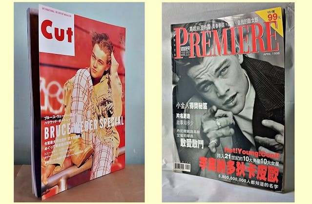 當年新星登場,臉龐不光是俊,實變化可期。當年湊巧買到1995年9月號的日本雜誌CUT,封面專題是攝影師Bruce Weber的作品,狄卡比奧封面照平常,內頁圖片更精彩,展現他七情上臉鬼靈精,可塑性不言而喻。