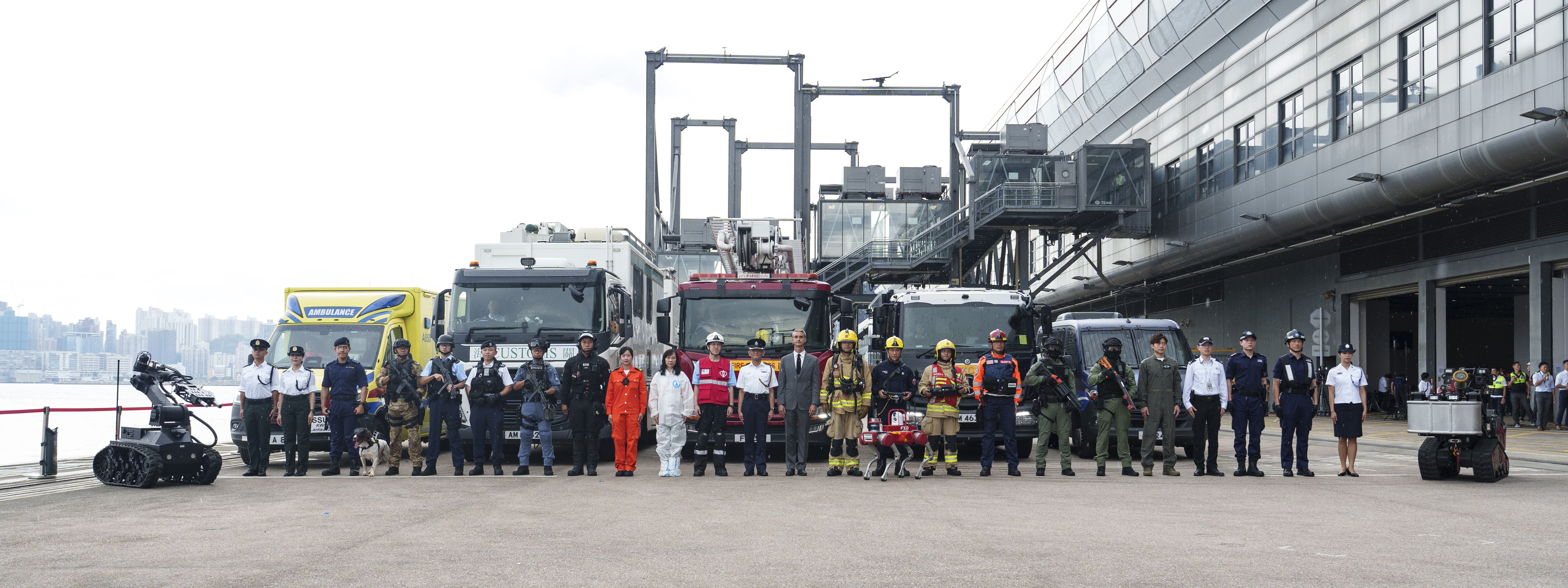 雙方消防部門演練不同模擬事故場境,包括「深方管轄、港方向深方移交指揮權」、深圳灣口岸旅檢大樓深港分界線附近深方區域發生火災,港方消防員率先趕到控制火勢,待深方人員到場後移交現場指揮權予深方,雙方協同疏散旅客,搜救被困人員,撲滅火災。