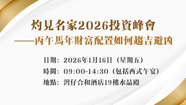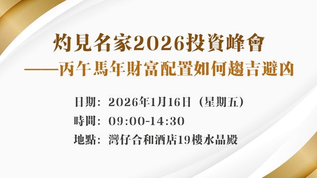 2025年環球金融市場充滿挑戰與機會,大家對2026年的投資大勢自然充滿期許,為了深入了解市場動向與趨勢,灼見名家傳媒舉辦2026投資峰會,特別邀請多位金融市場專家、學者提供深度分析,幫助大家在新的一年中開創佳績。